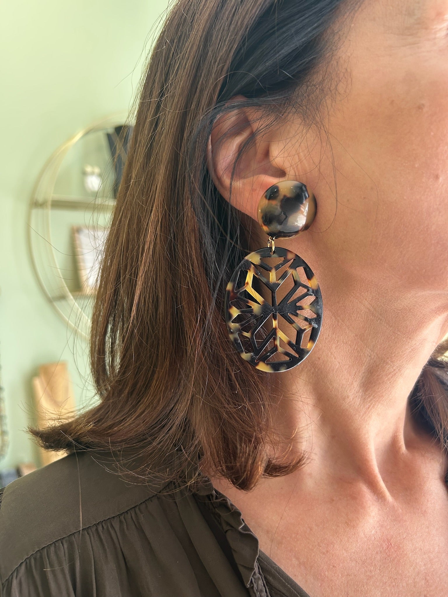 Boucles d’oreilles à clips en acétate de cellulose Francine Bramli.