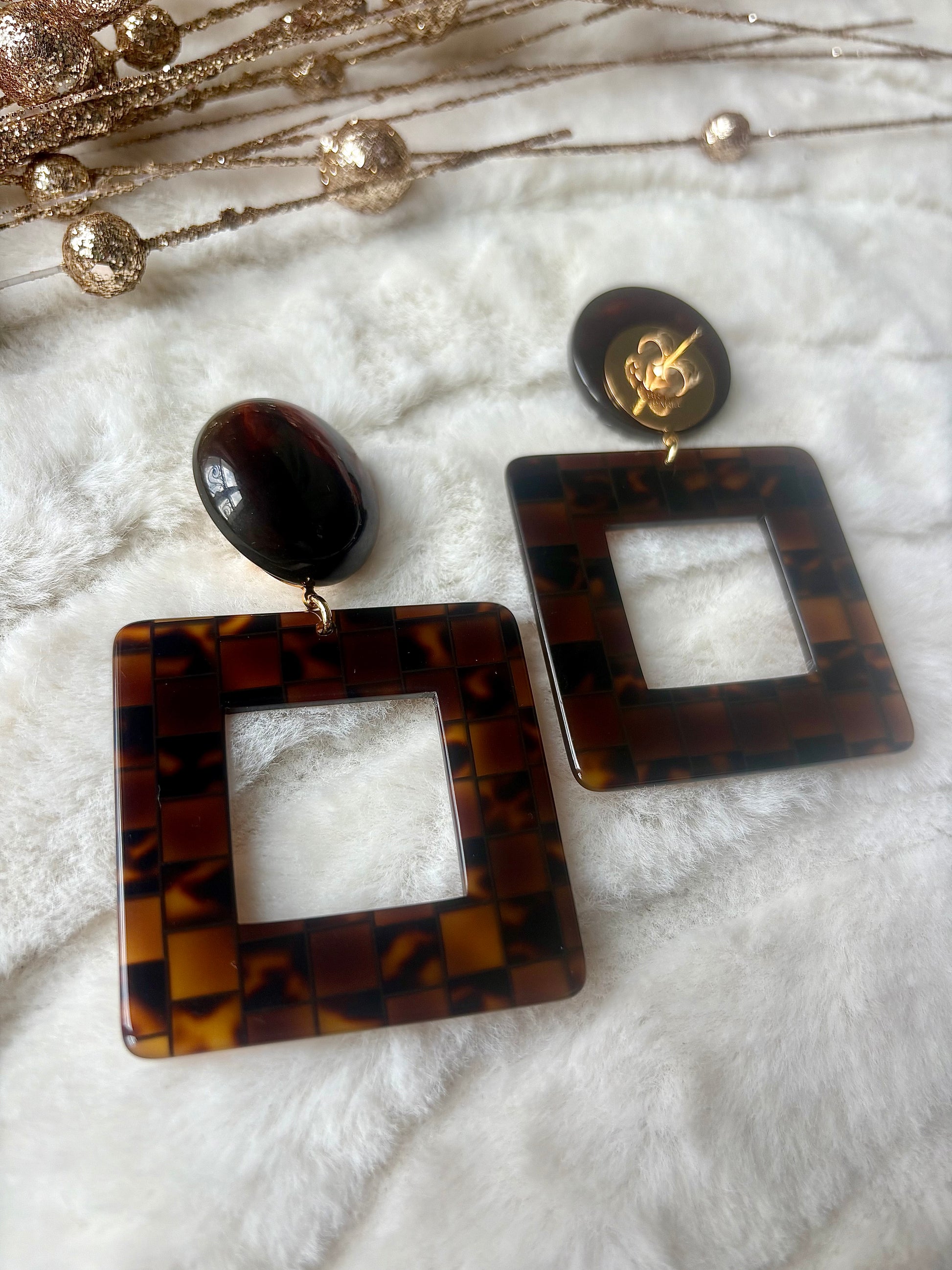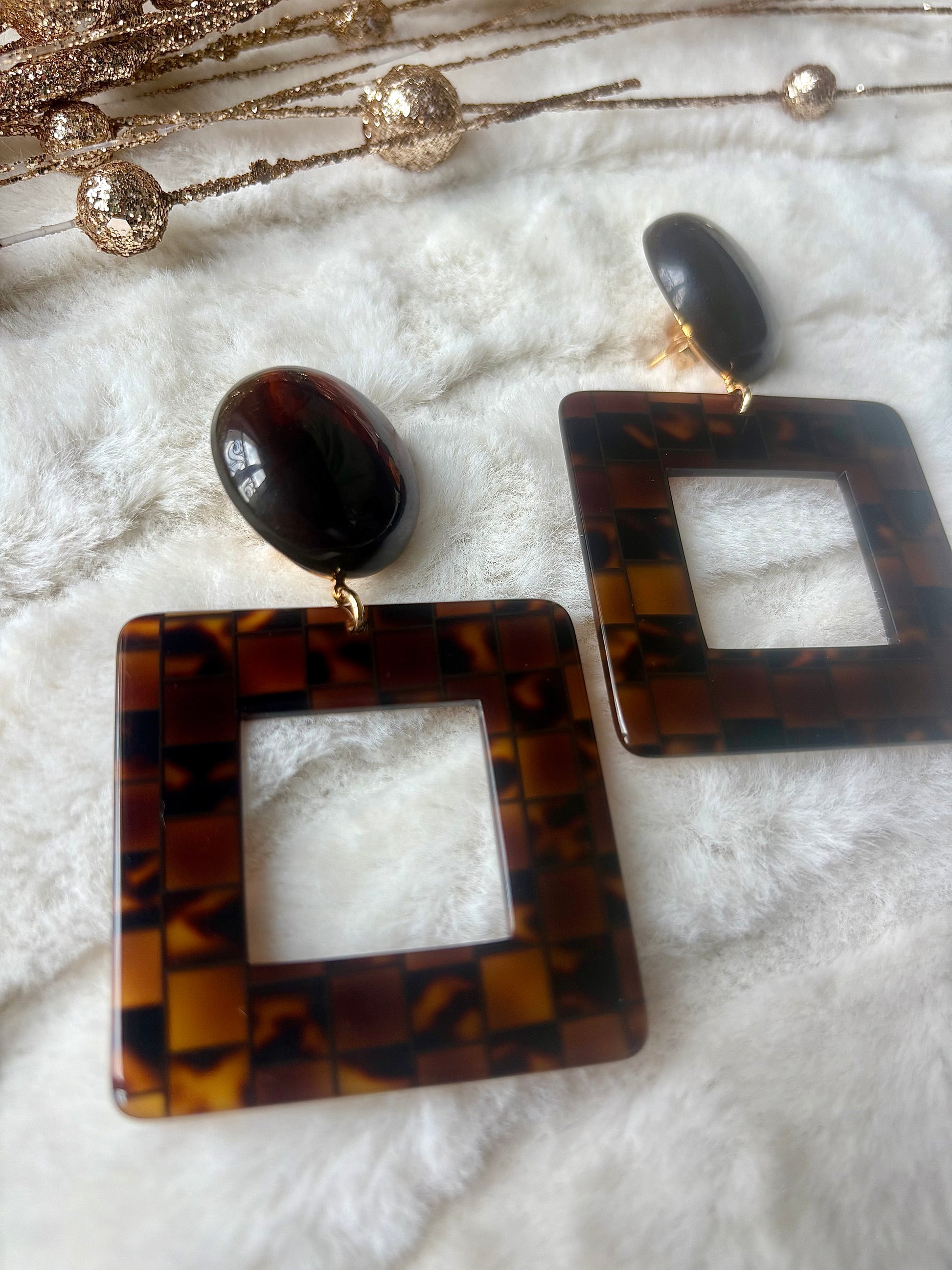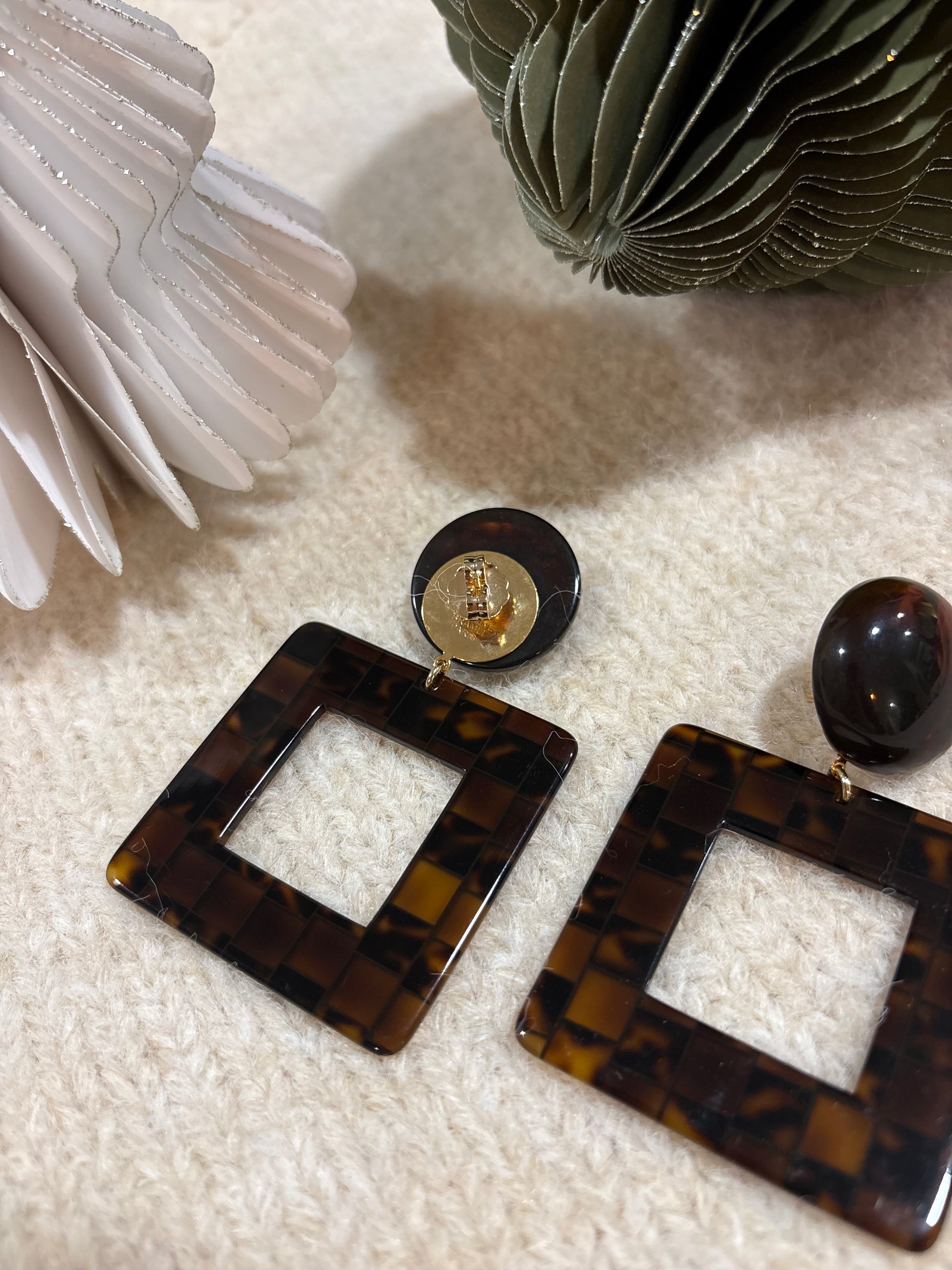 Boucles d’oreilles percées en acétate de cellulose, résine naturelle à base de fleur de coton.