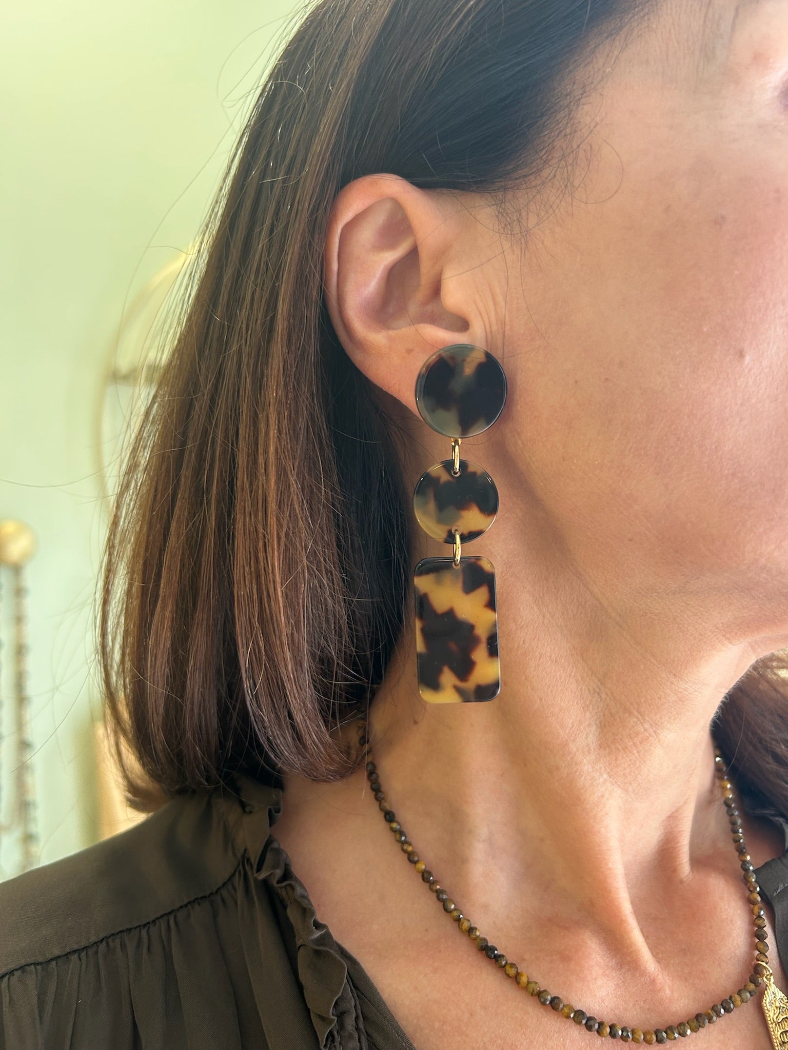 Boucles d’oreilles à clips en acétate de cellulose Francine Bramli.