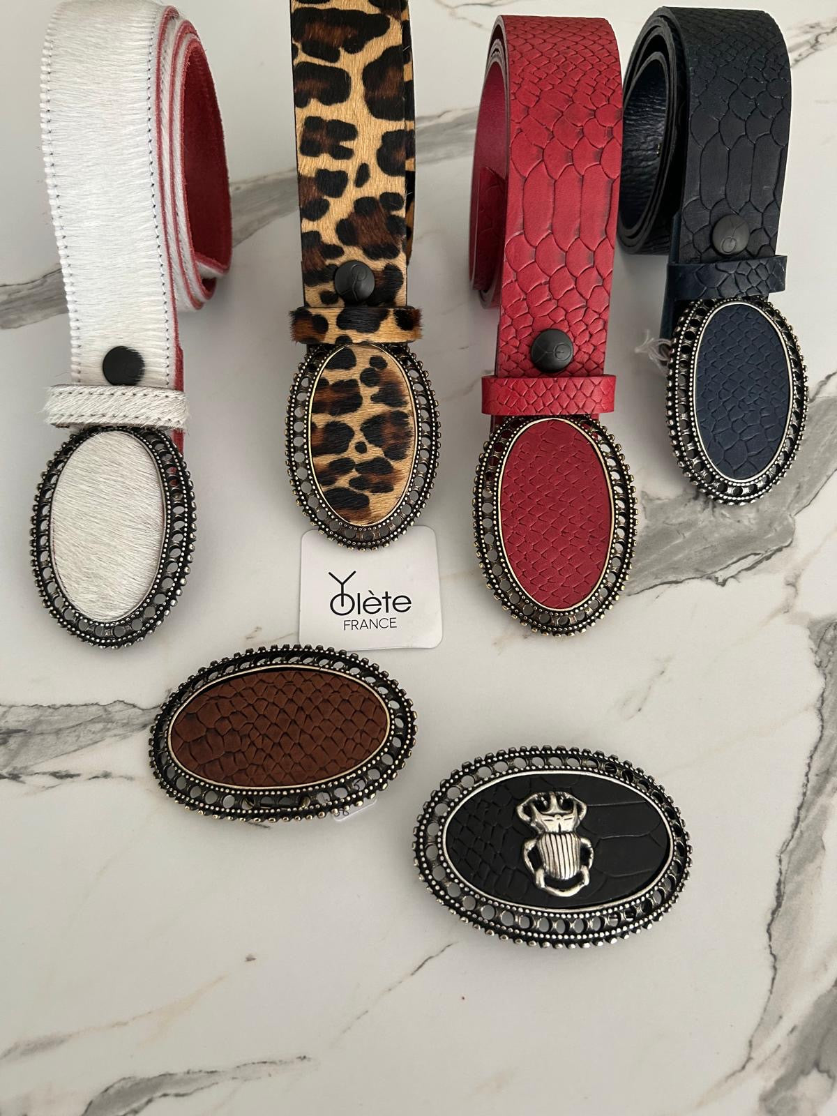 Looks avec cuirs et boucles de ceinture interchangeables Yolète en 40mm.