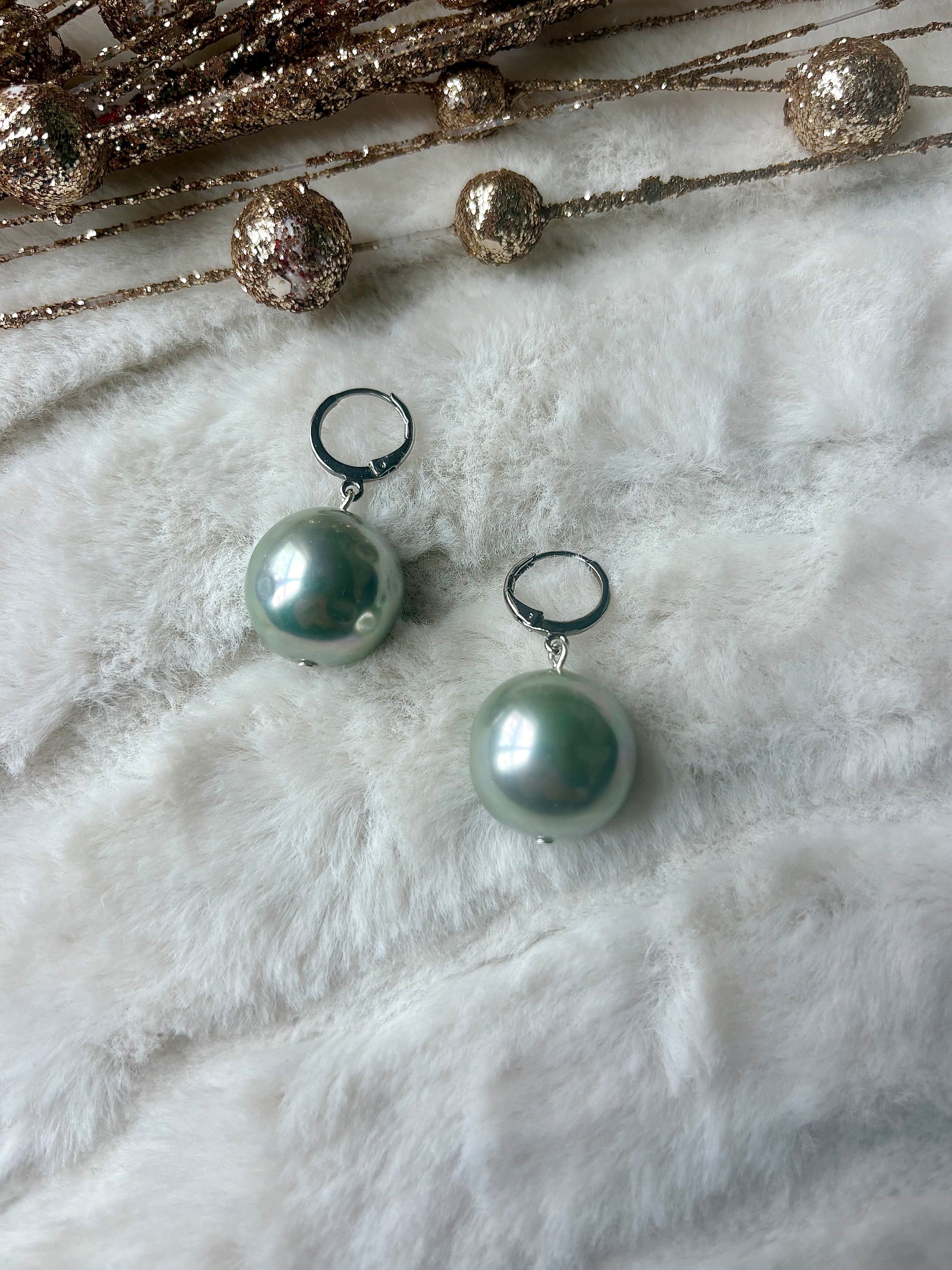 Boucles d’oreilles dormeuses percées avec perles naturelles.
