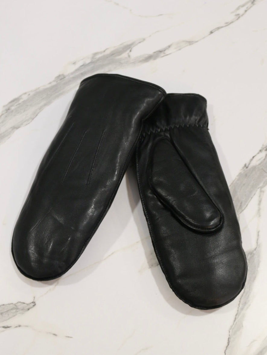 Moufles confortables en cuir, doublées d’une teddy noire douce et chaude.