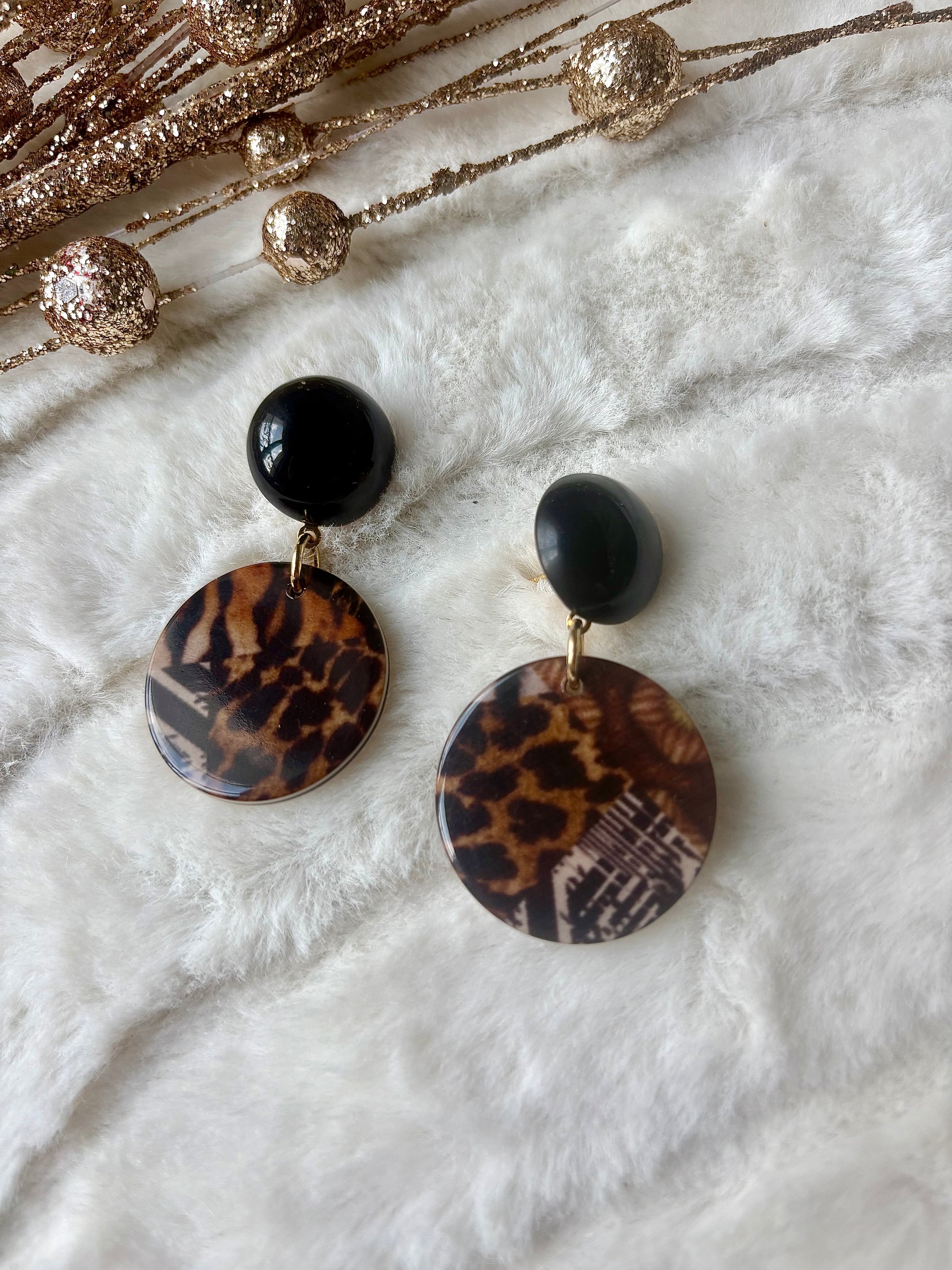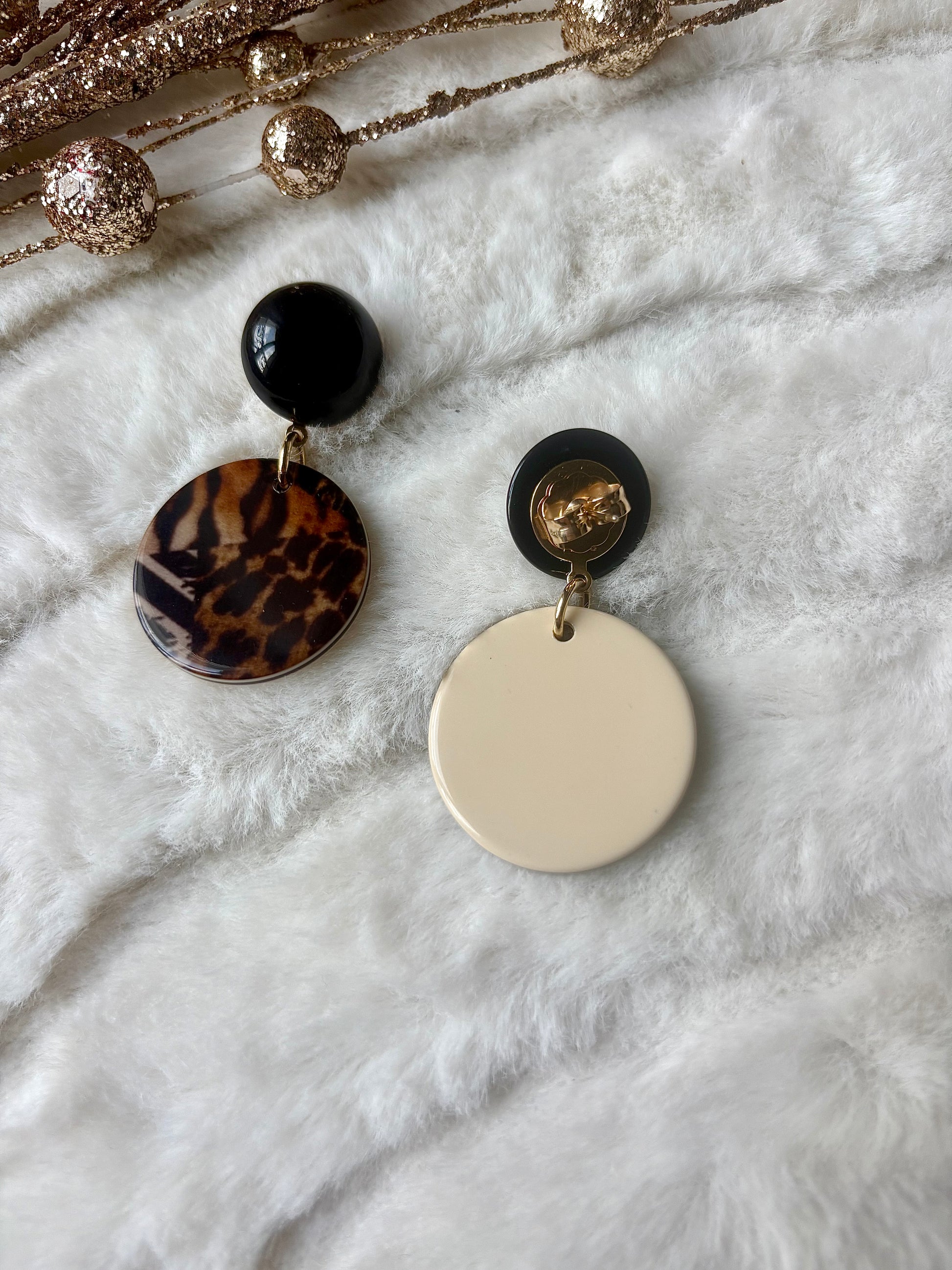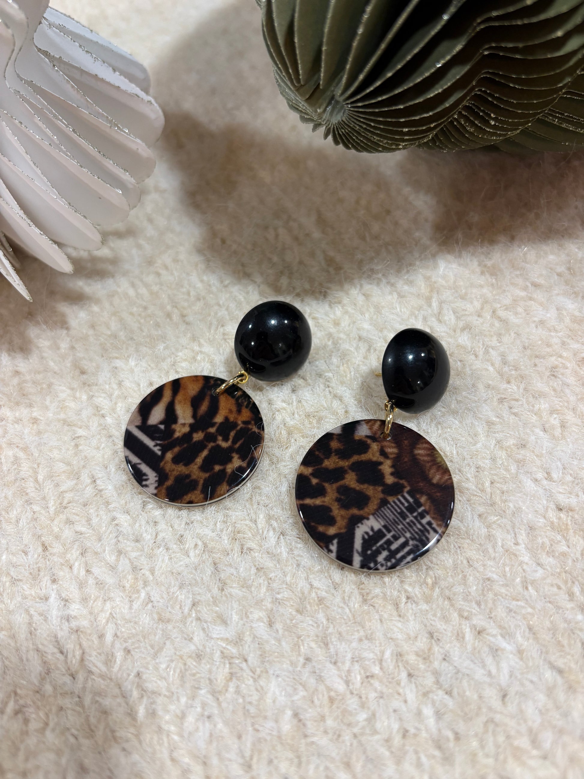 Boucles d’oreilles percées en acétate de cellulose, résine naturelle à base de fleur de coton.