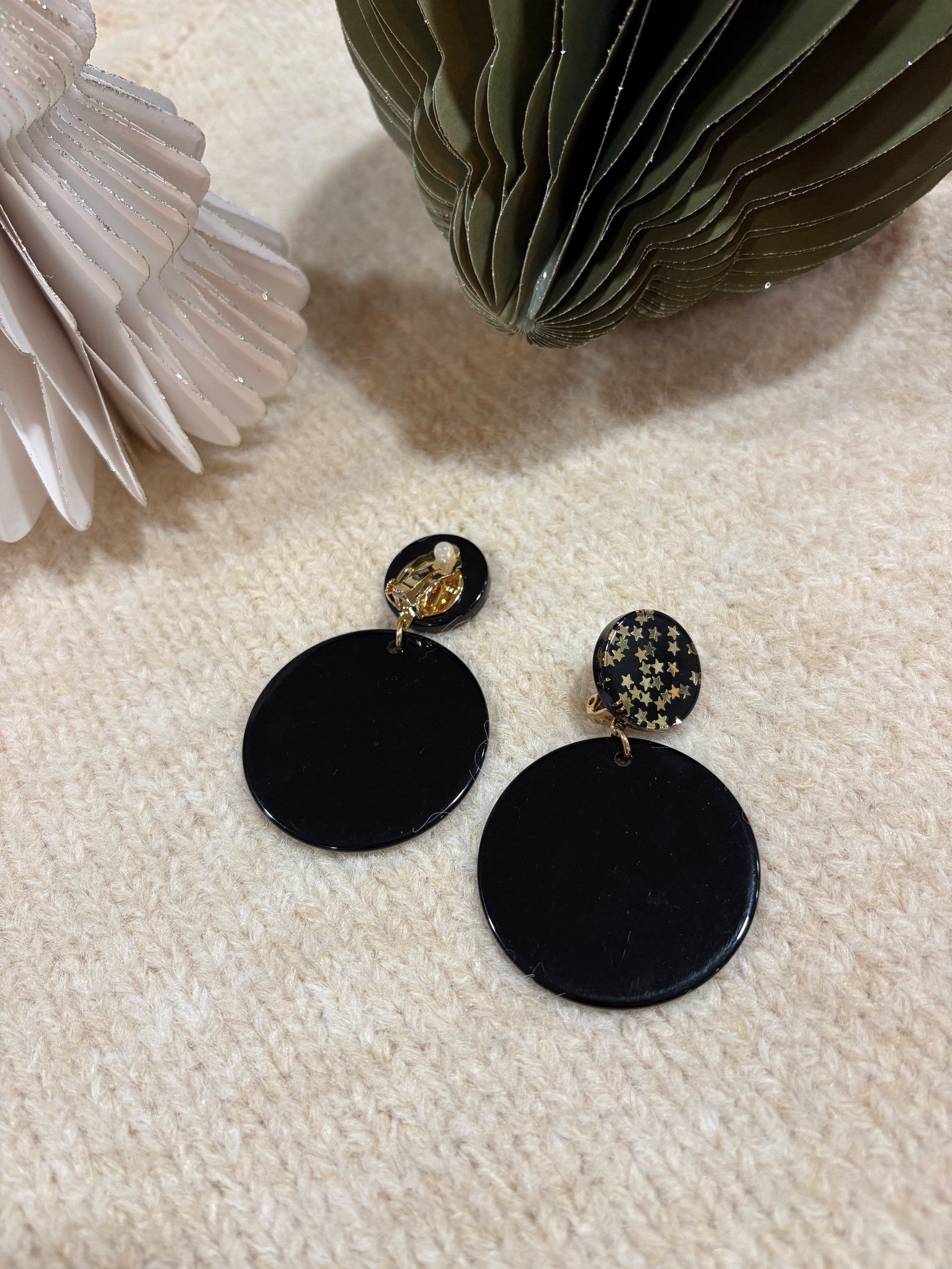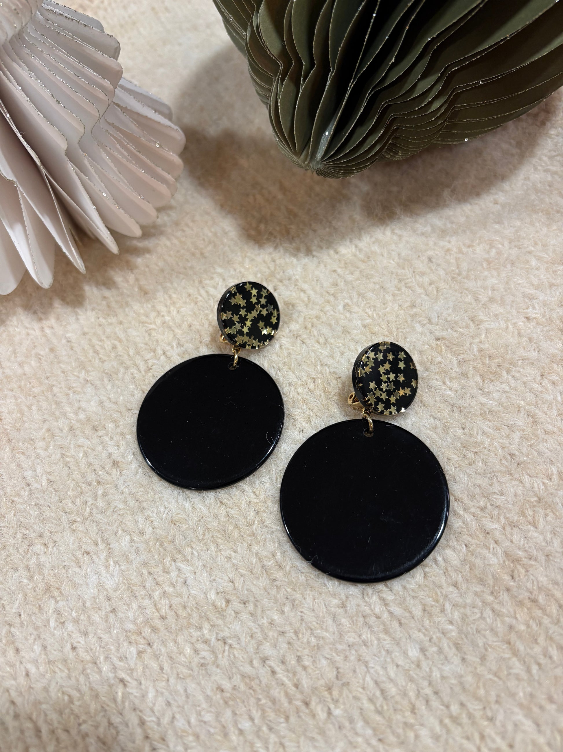 Couleur : Noire et cabochon noir avec des étoiles dorées.